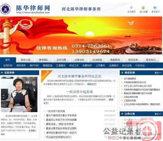 另据搜狐新闻报道,2016年7月22日,河北陈华律师事务所网站暨陈华律师网正式上线运行。据了解,河北陈华律师事务所网站是隆化县首家律师事务所开办的法律服务型网站,这标志着隆化县的法律服务行业进入了网络时代。